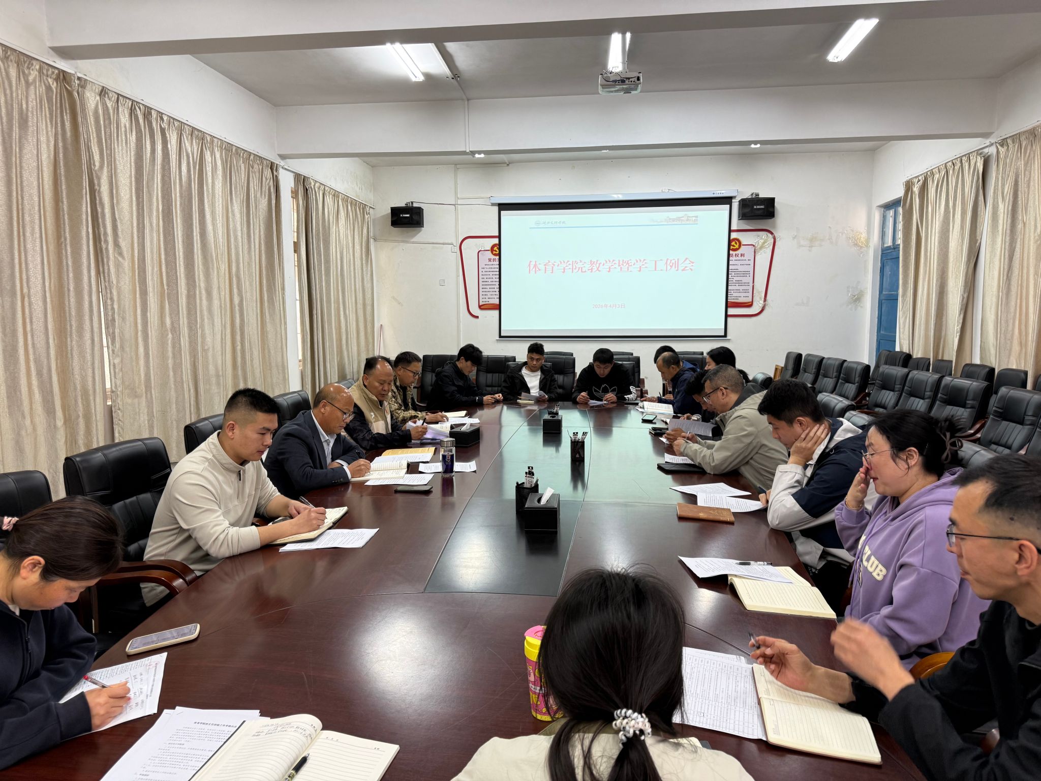 (通讯员 罗逸)2026年4月3日中午12时,qy球友会官方网站在学院会议室召开4月教学暨学工例会。会议由学院副院长吉玉良主持,学院班子成员、各系部主任及书记、全体班主任、教学办主任及辅导员参加会议。会议围绕全年级学业问题与日常管理工作展开深入研讨。